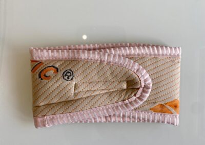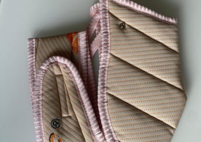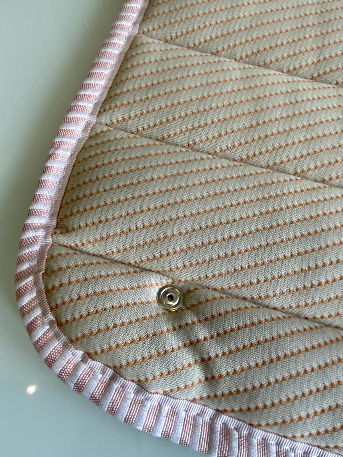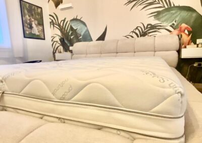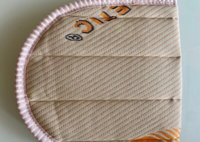 fascia perimetrale laterale in tessuto tridimensionale 3D che ottimizza un ricambio costante d’aria all’interno del materasso, munita di nastrini in raso coordinati